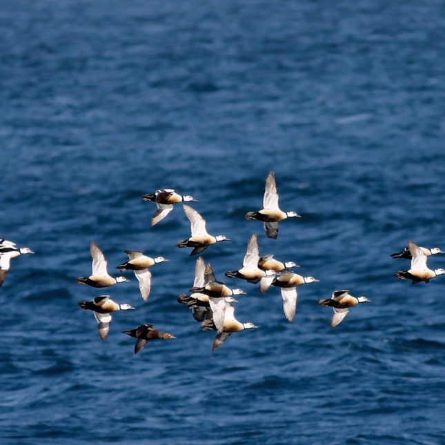 Emperor Goose; Least, Parakeet & Crested Auklets; Dovekie; Yellow-billed, Arctic & Pacific Loons; Steller’s, Spectacled, King & Common Eiders; Ivory (rare) & Slaty-backed Gulls; Common Ringed Plover; Common Greenshank; Wood Sandpiper; Gray-tailed Tattler; Red-necked Stint; Red Phalarope; Eastern Yellow & White Wagtails; Red-throated Pipit; Bluethroat; Brambling all are nearly annual; many less common Eurasian vagrants seen on recent tours: Green, Terek & Common Sandpipers; Great Knot; Long-toed & Temminck’s Stints; Eyebrowed Thrush, Siberian Stonechat, Olive-backed Pipit, Common Chiffchaff; Brambling, Pallas’s Bunting; Eurasian Bullfinch & Hawfinch depending upon year and weather patterns.